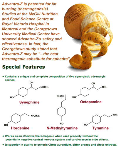 Advantrim® conține un compus revoluționar de ardere a grăsimilor, care este un extract de citrus aurantium. Acest extract conține alcaloizi care sunt legați de alcaloizi cu efedrină și au efecte similare asupra metabolismului și defalcării grăsimilor fără efectele secundare negative ale efedrinei. Acestea cresc rata metabolică și de asemenea, măresc rata de defalcare a grăsimilor depozitate (lipoliza) în organism.