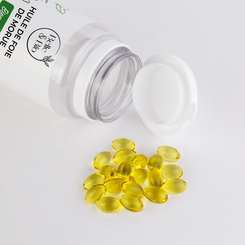 Suplimentele noastre de cod pentru ulei de ficat păstrează toate calitățile nutriționale ale uleiului, precum și toate proprietățile sale. Capsula este ideală pentru o formă uleioasă, permițând consumul de ulei ușor și fără constrângere. Aportul de vitamine este astfel controlat, pentru a asigura o doză zilnică echitabilă.